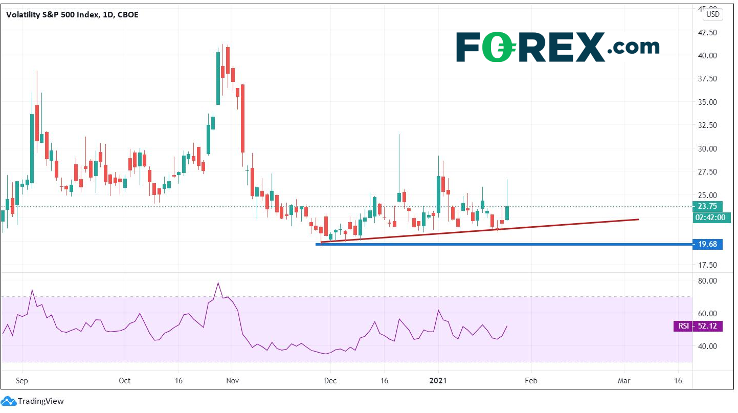 标普500指数的波动性指数(VIX)可能正在向我们发出警告。随着标普500指数2020年12月持续创下新高,VIX指数开始连续构筑低点抬高!这表明,为了防范风险规避走势,交易员正在为对冲股市风险购买保险。